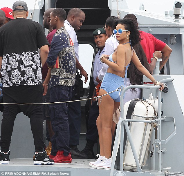 Rihanna e veshur me bikini te medha, shetit me miqte ne varke